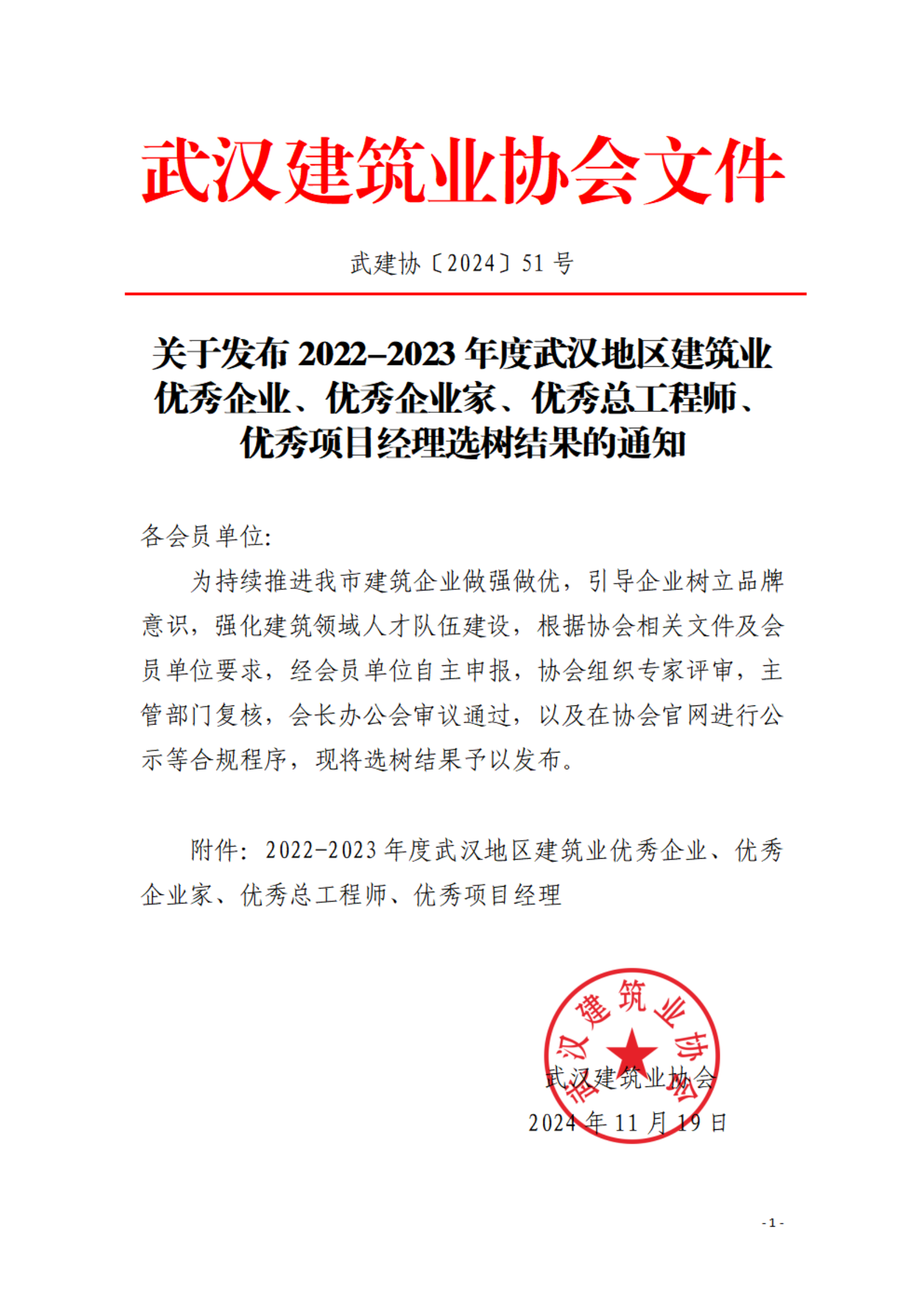 - 2024-11-22湖北省建工第五建設(shè)有限公司榮獲2022-2023年度武漢地區(qū)建筑業(yè)“四優(yōu)”...[圖]