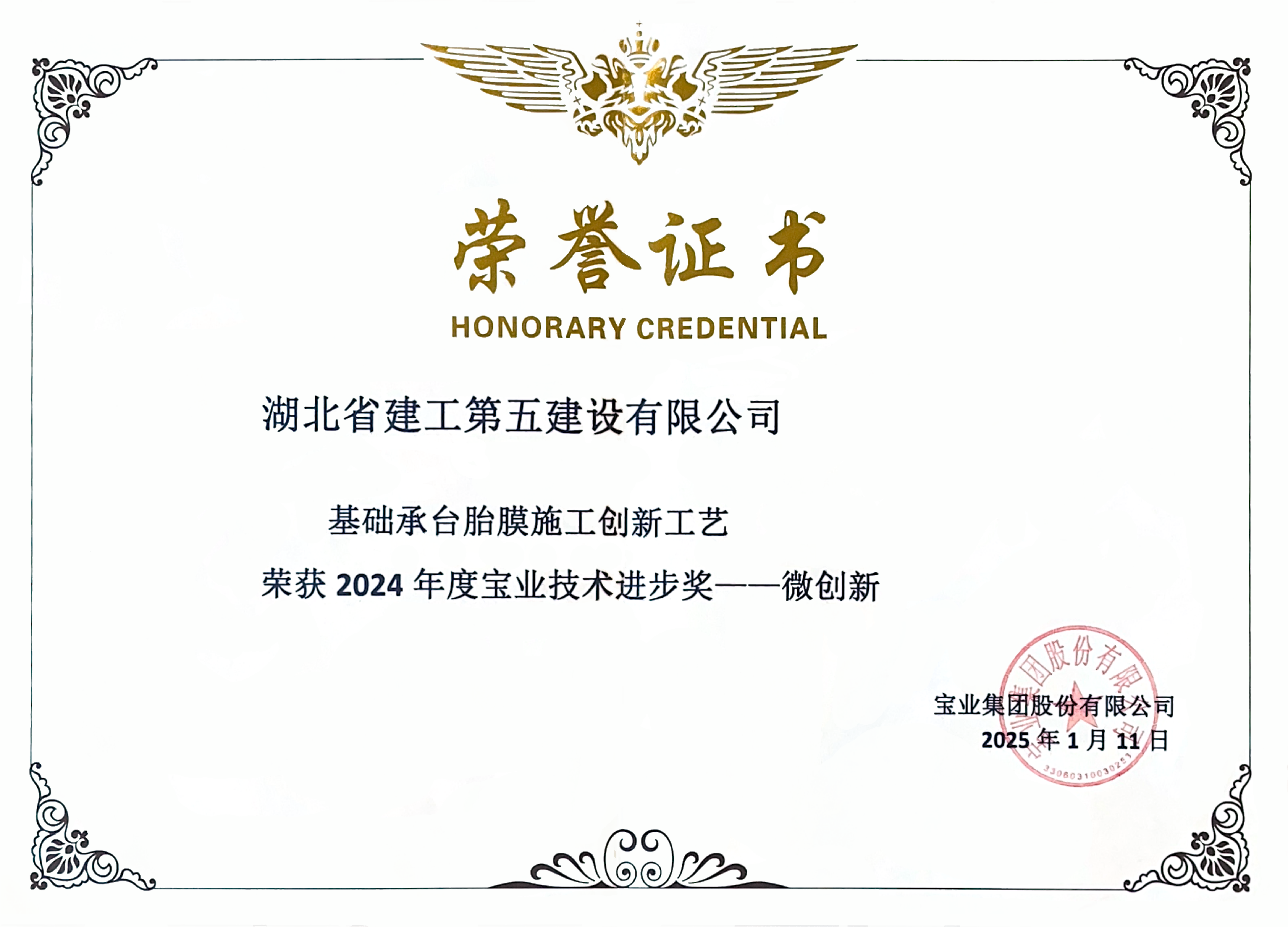 - 2025-01-16湖北省建工第五建設(shè)有限公司榮獲寶業(yè)集團(tuán)2024年度寶業(yè)技術(shù)進(jìn)步獎微創(chuàng)新獎...[圖]